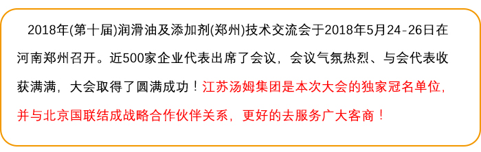 江蘇湯姆集團獨家冠名的2018年(第十屆)潤滑油及添加劑(鄭州)技術交流會圓滿落幕!