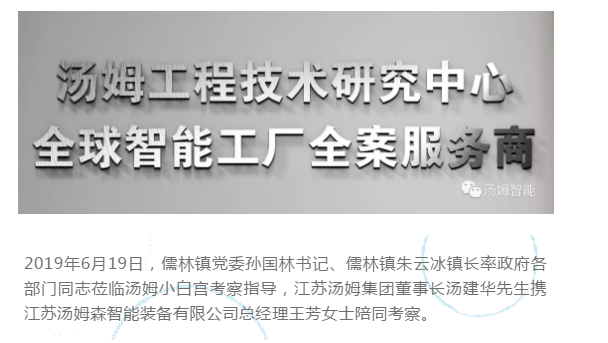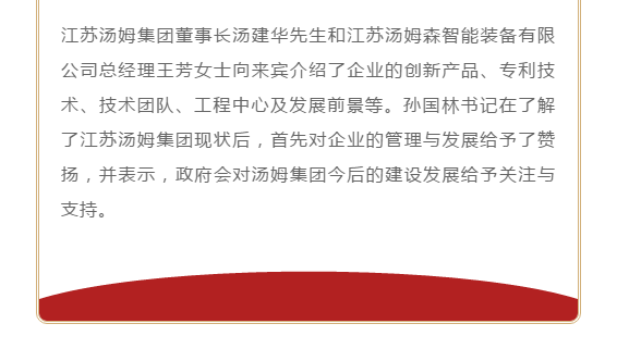 江蘇湯姆集團(tuán)熱烈歡迎儒林鎮(zhèn)黨委孫國(guó)林書記等一行領(lǐng)導(dǎo)的蒞臨考察
