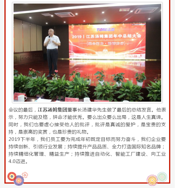 江蘇湯姆集團(tuán)2019年中總結(jié)大會圓滿落幕|凝心聚力 砥礪前行
