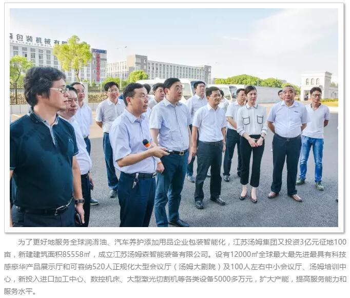 中共常州市委書記費高云視察江蘇湯姆集團 對湯姆在化工包裝行業所做的成績表示充分的肯定